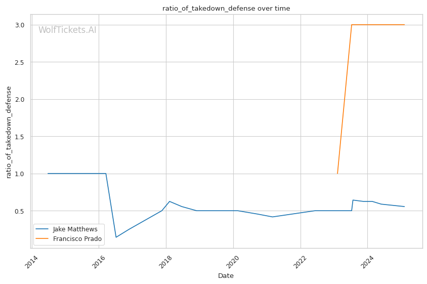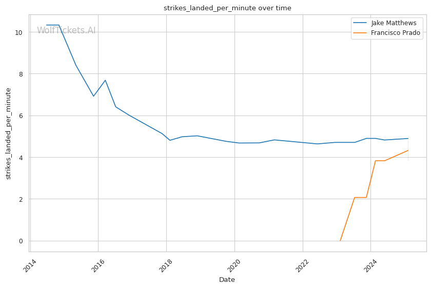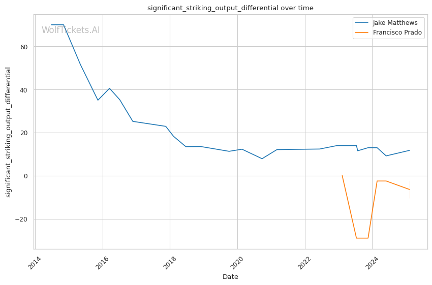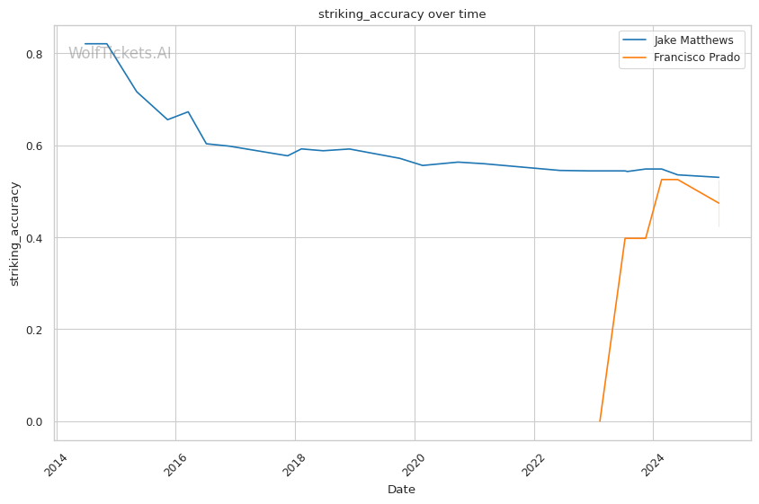 | Stat | Jake Matthews | Francisco Prado | Weight Class Average | |