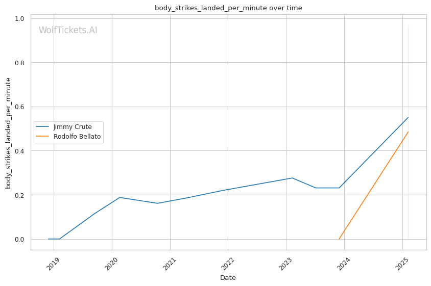 | Stat | Jimmy Crute | Rodolfo Bellato | Weight Class Average | |