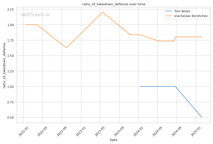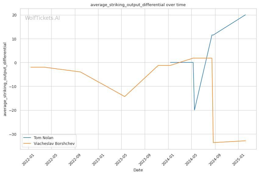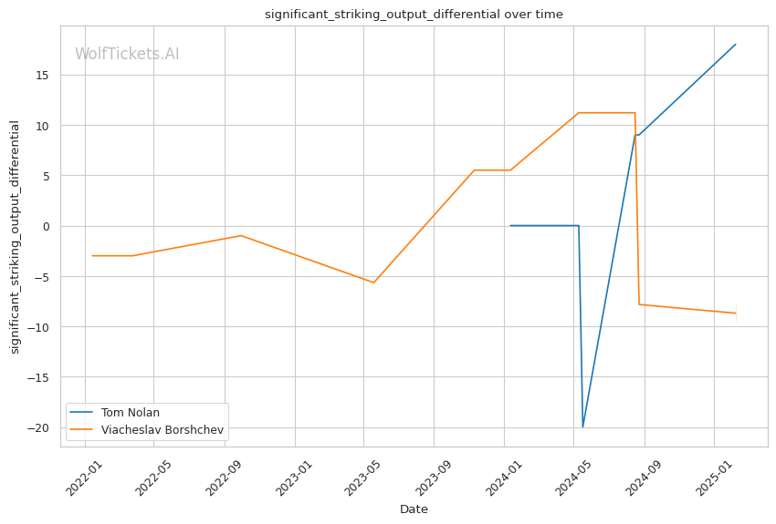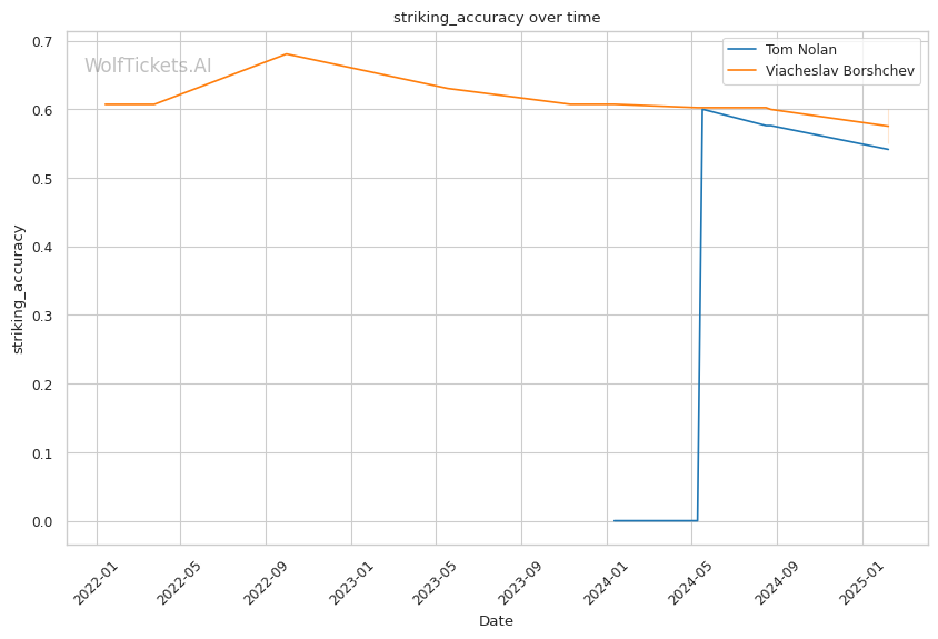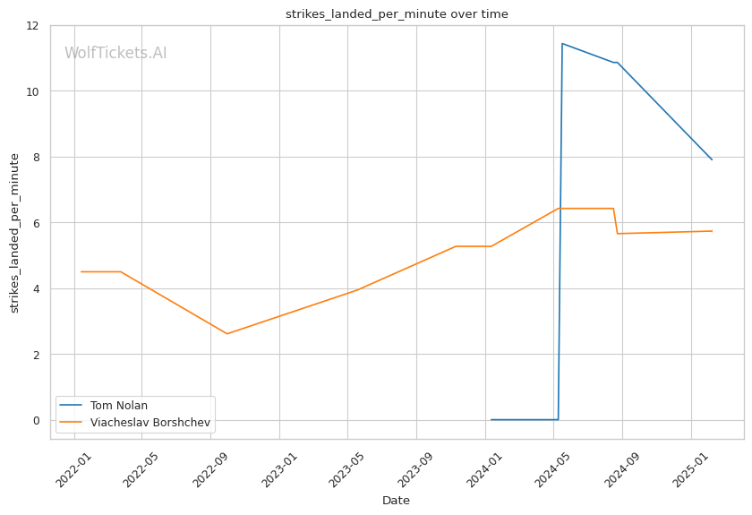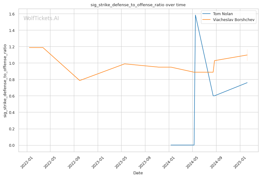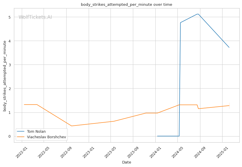 Expect Tom Nolan to capitalize on his reach and aggression, using his defensive improvements to withstand Borshchev's striking while exploiting grappling weaknesses. WolfTicketsAI firmly sides with Nolan for this bout.