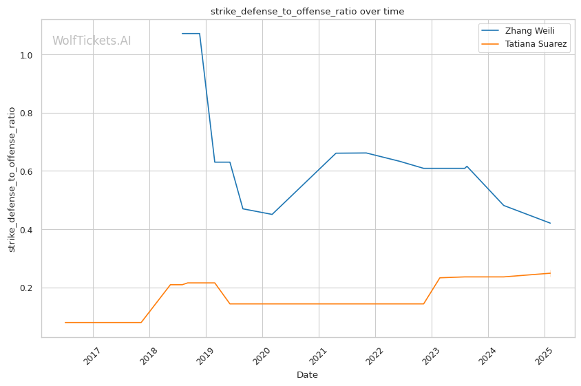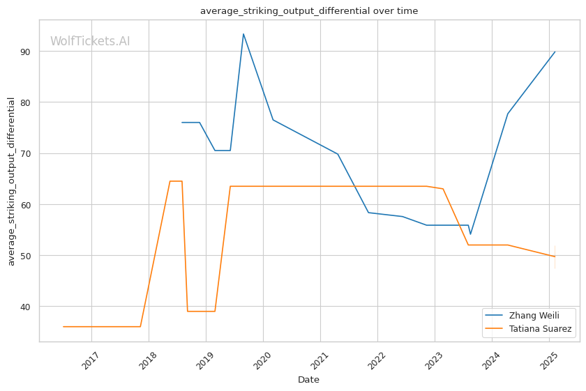 | Stat | Zhang Weili | Tatiana Suarez | Weight Class Average | |