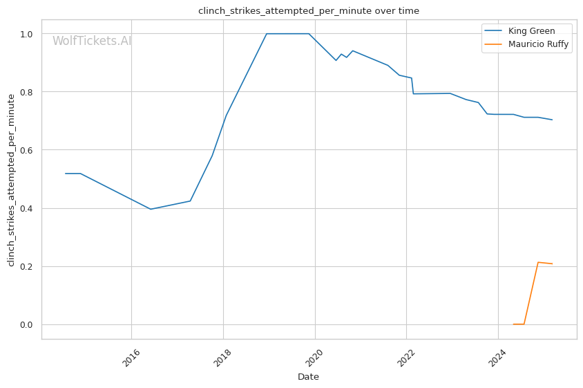 | Leg Strikes Landed per Minute | 1.049 | 0.609 | 0.604 | |