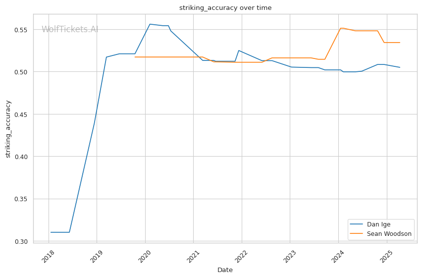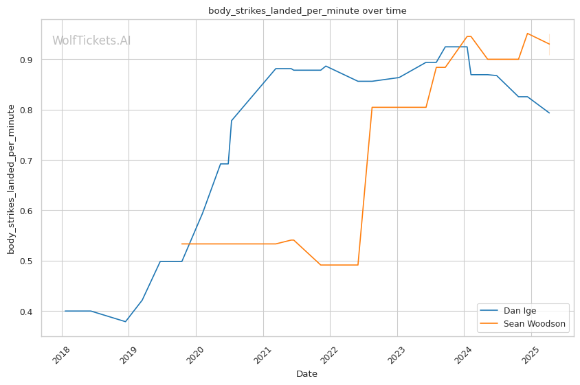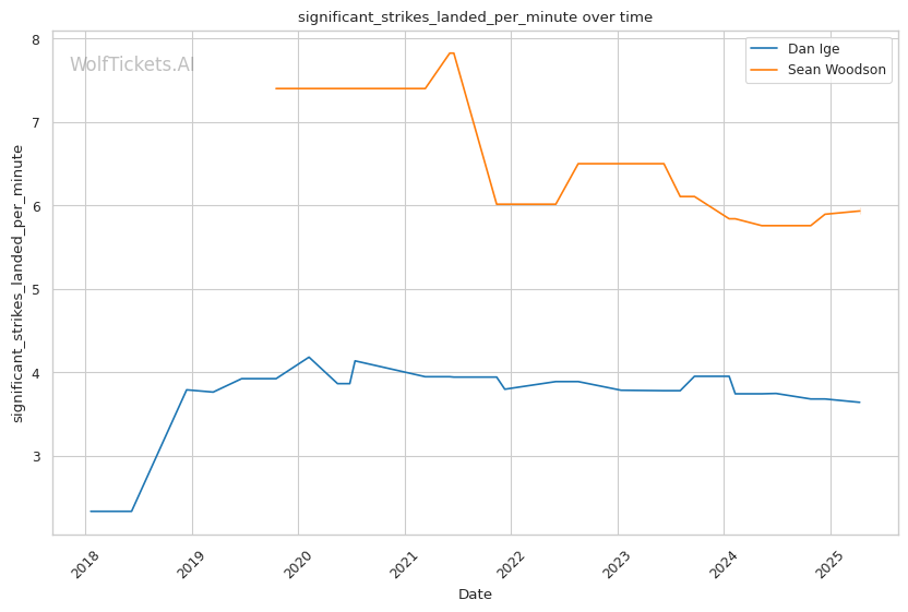 | Stat | Dan Ige | Sean Woodson | Weight Class Average | |