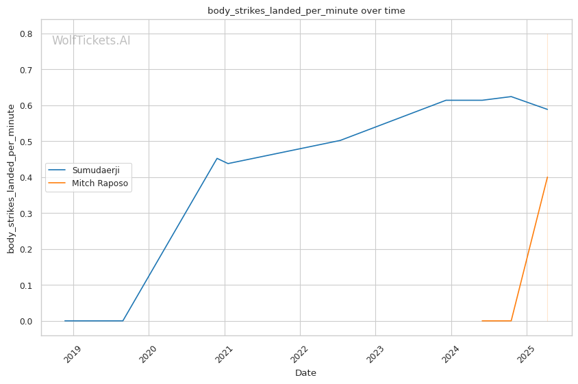 | Body Strikes Landed per Minute | 0.588 | 0.800 | 0.730 | |