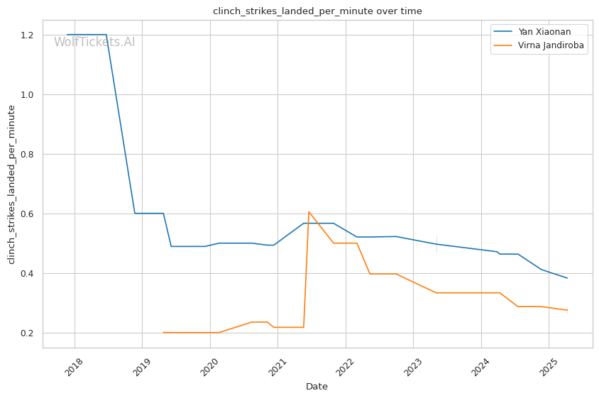 | Stat | Yan Xiaonan | Virna Jandiroba | Weight Class Average | |
