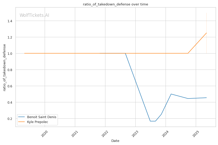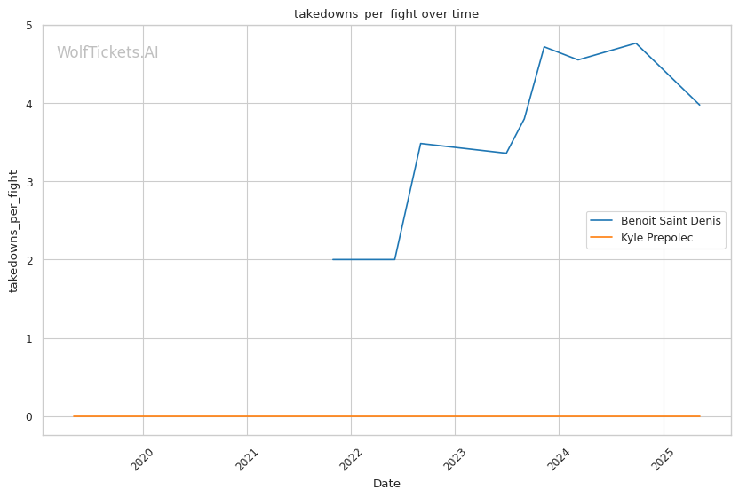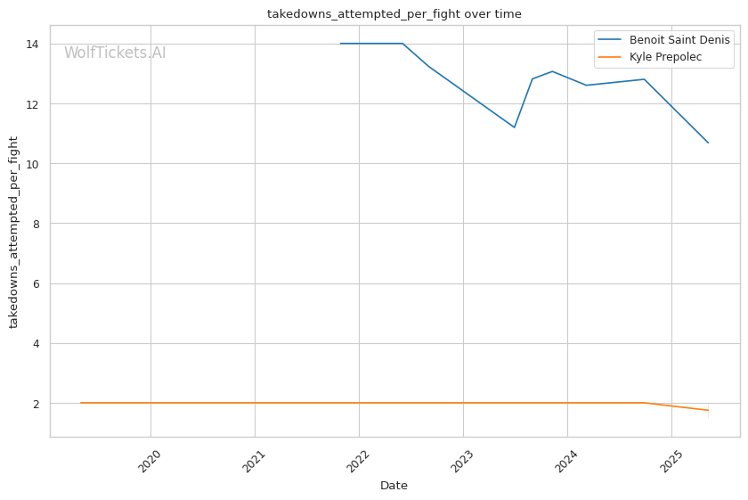 Prepolec has shown no takedown offense in his UFC career, attempting just 1.5 takedowns per fight without success. This one-dimensional approach will likely be problematic against Saint Denis's well-rounded attack.