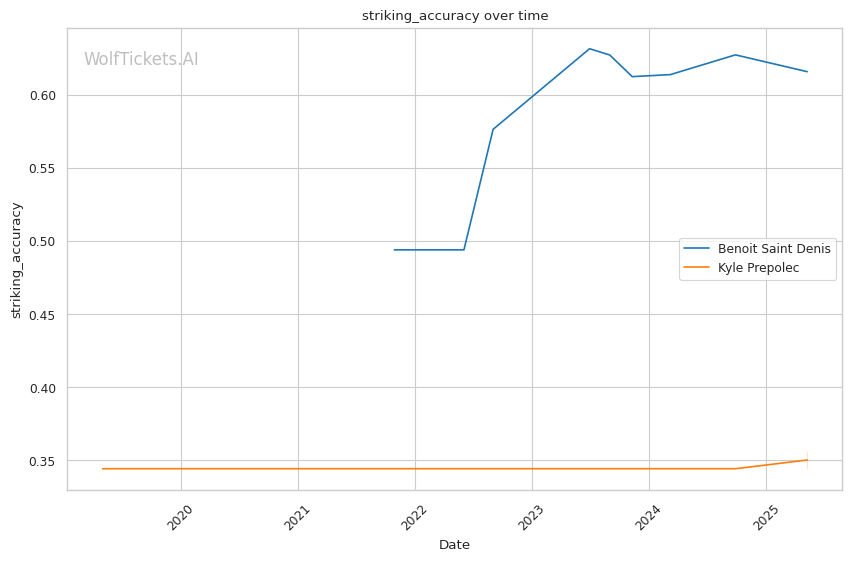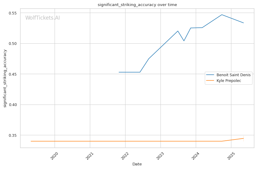 The model has no prediction history for Kyle Prepolec, adding some uncertainty to this matchup. However, the statistical disparities between the fighters are significant enough to warrant strong confidence in Saint Denis.