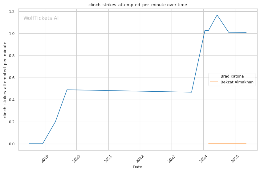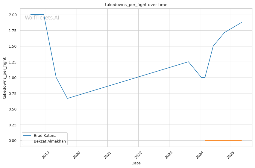Recent takedowns attempted per fight added 3 points to the prediction, highlighting Katona's more diverse offensive approach compared to Almakhan's striking-heavy game.