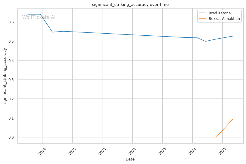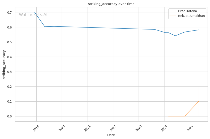 Power vs technique: Almakhan's knockout potential (1.0 knockdowns per fight) represents his clearest path to victory against Katona's more technical but less powerful striking approach.