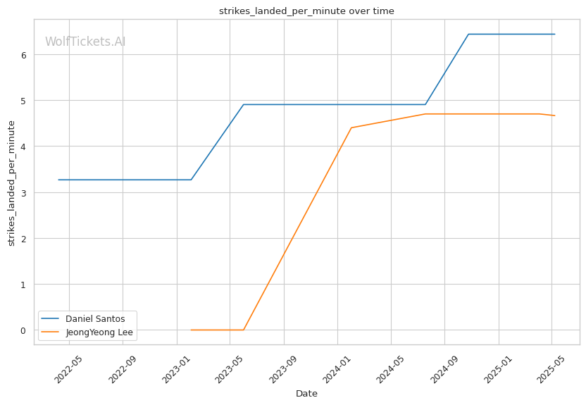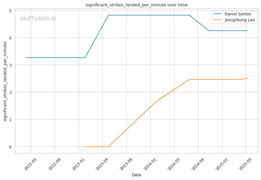 | Stat | Daniel Santos | JeongYeong Lee | Weight Class Average | |