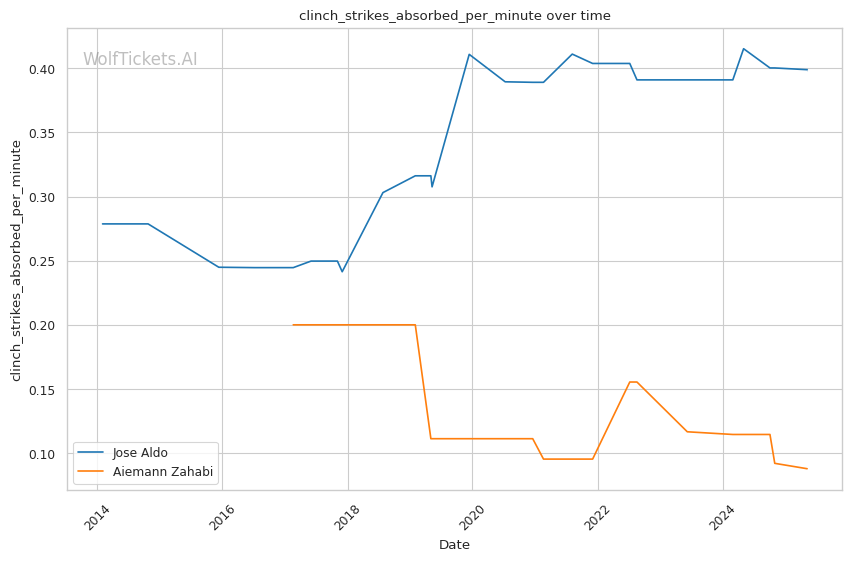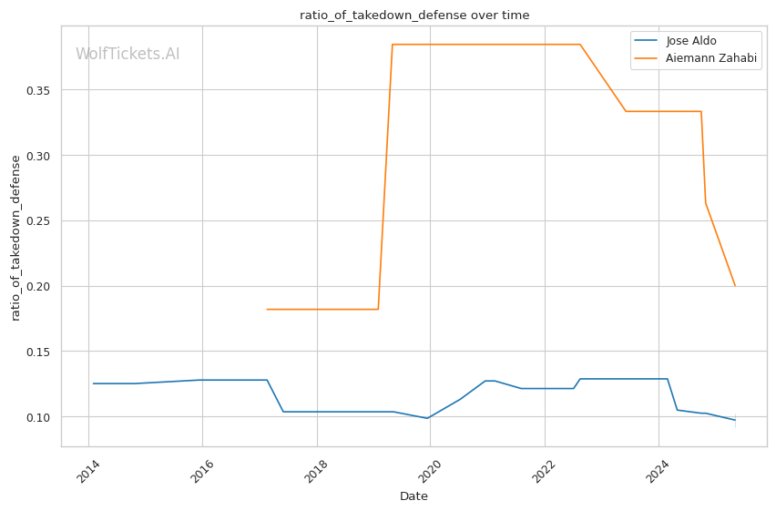 Defensively, Aldo remains elite. His takedown defense (91%) makes him nearly impossible to wrestle, forcing opponents into striking exchanges where his counter uppercuts and body shots can do serious damage. However, his gas tank remains a concern - against Martinez, he secured a late takedown when fatigued to control the final minutes.
