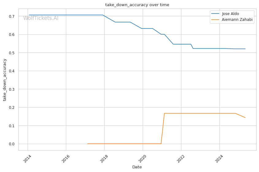 | Takedown Accuracy | 52.00% | 14.29% | 33.76% | |