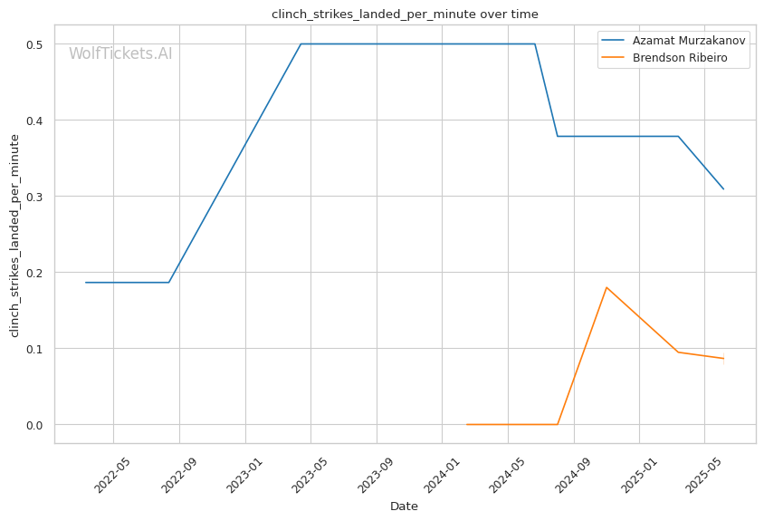 This matchup presents a fascinating clash between Murzakanov's patient counterstriking and Ribeiro's clinch-heavy approach. Murzakanov's technical advantages become apparent when examining specific interactions.