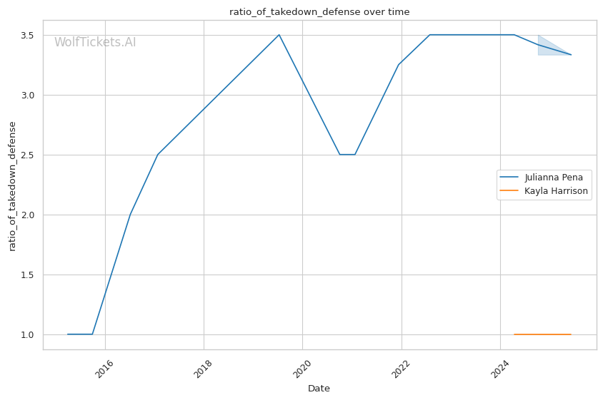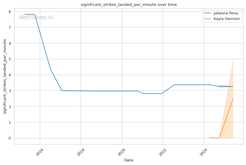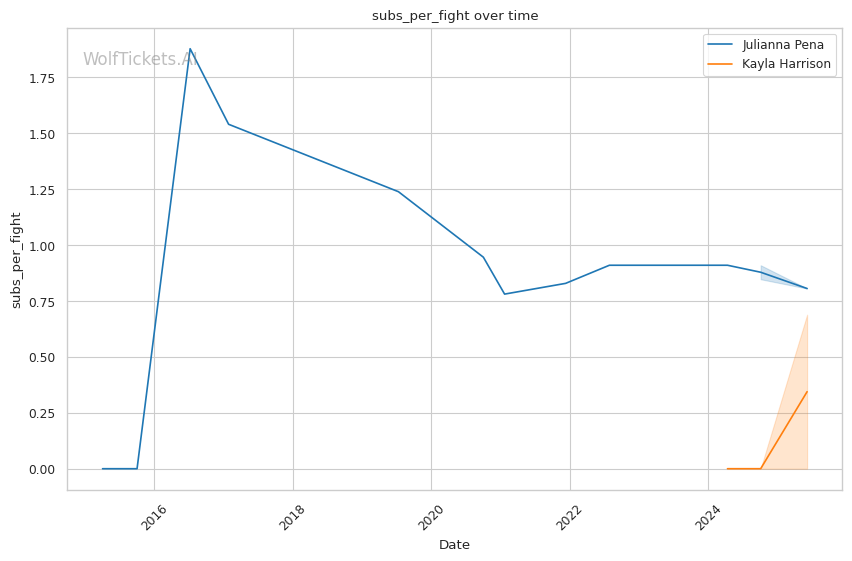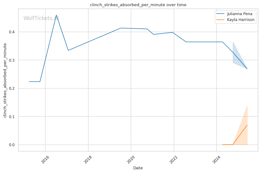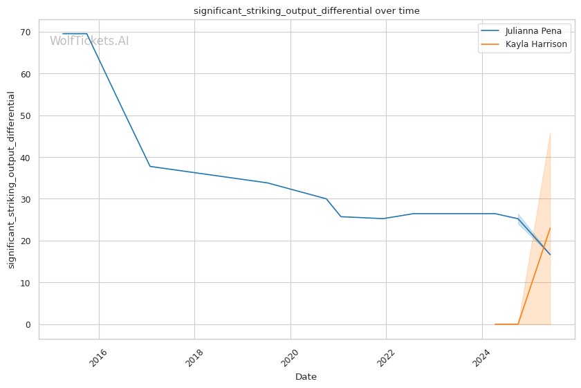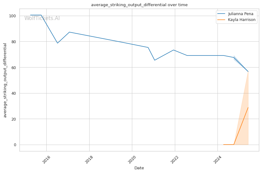 | Stat | Julianna Pena | Kayla Harrison | Weight Class Average | |