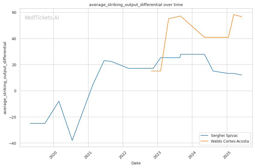 Working against Cortes-Acosta are his significant striking impact differential (-3.0) and recent win percentage (-3.0), though these negatives are outweighed by the positive factors.