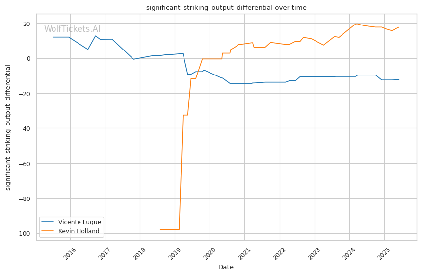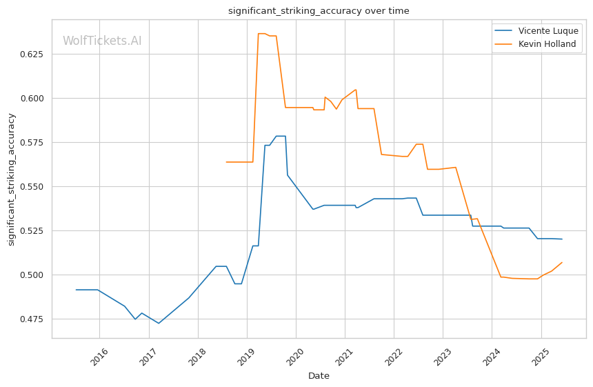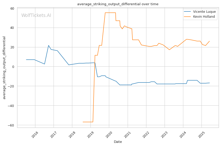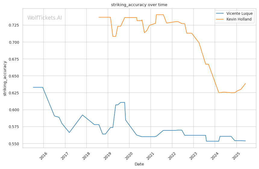 The model's inconsistency with Luque suggests caution, as his performances have been unpredictable since his brain injury. However, the model has shown better accuracy with Holland's recent fights, lending credibility to the current prediction.