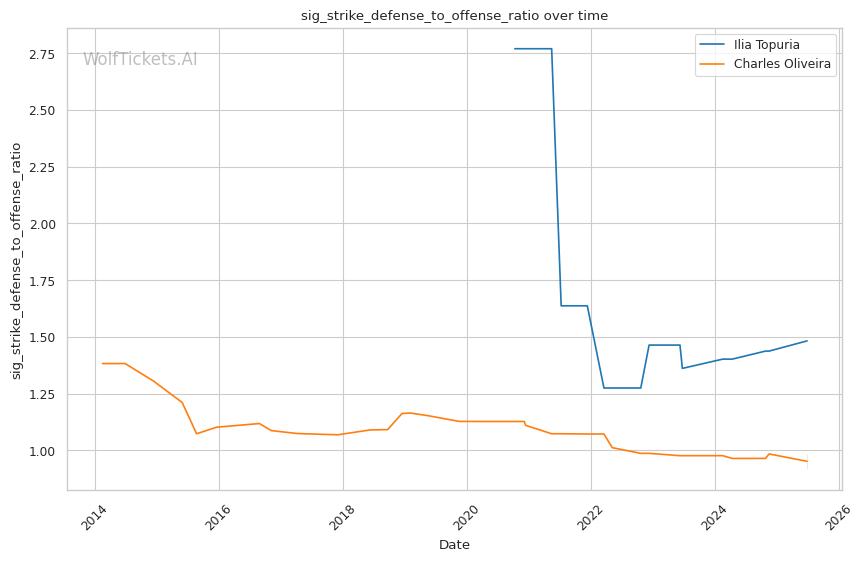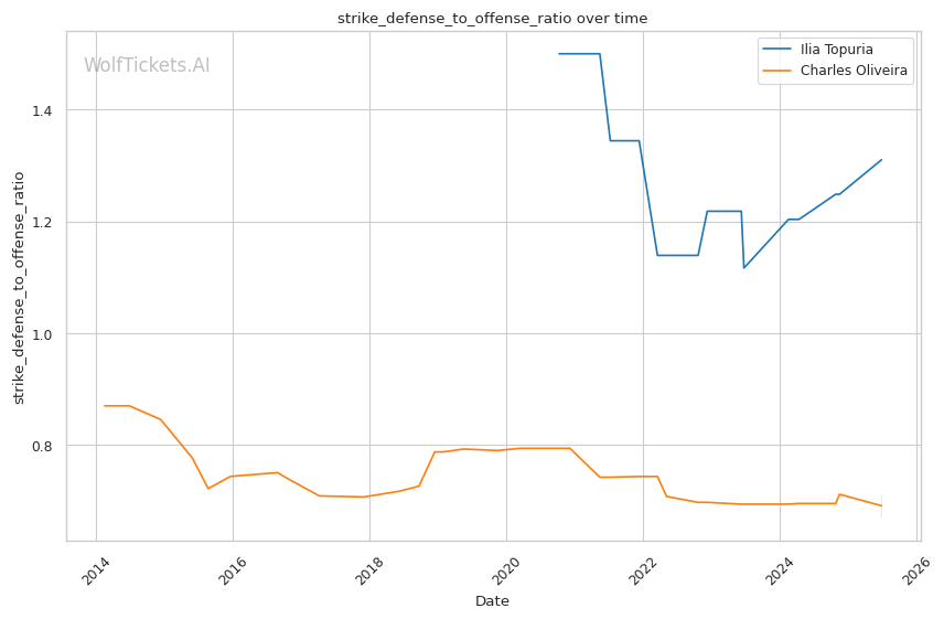 | Striking Defense to Offense Ratio | 131.03% | 67.08% | 69.79% | |