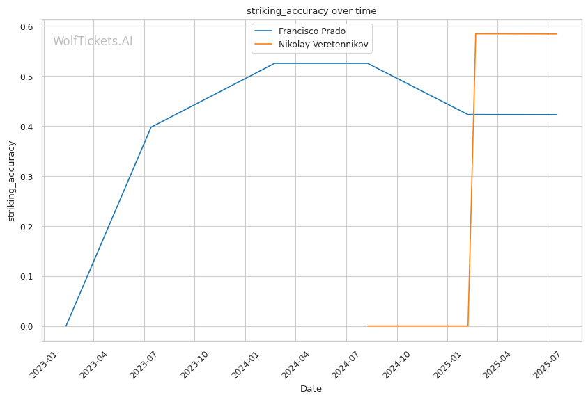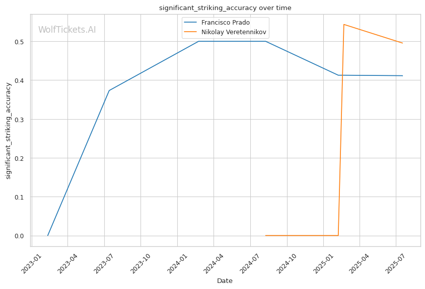 Despite Veretennikov's technical advantages and patient approach, Prado's counter-striking ability and superior defensive metrics give him the edge. The model's confidence in Prado's striking defense and overall skill rating, combined with his proven ability to exploit specific defensive lapses, makes him the rightful favorite to hand Veretennikov his third consecutive UFC loss.