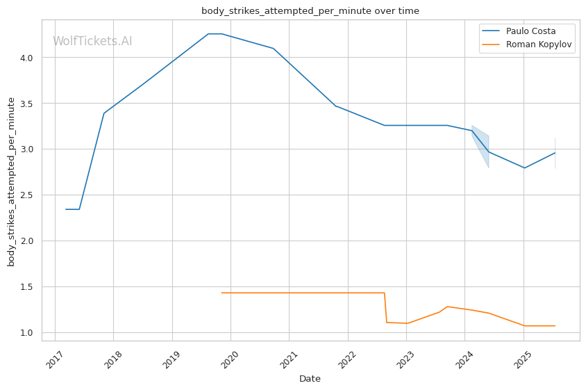 | Body Strikes Attempted per Minute | 3.118 | 1.067 | 1.065 | |