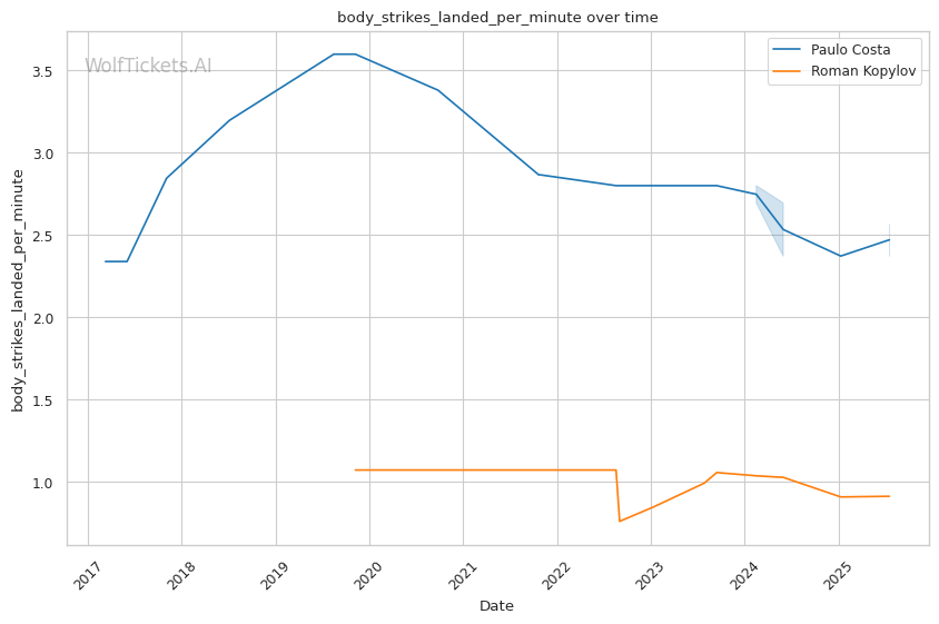 | Body Strikes Landed per Minute | 2.568 | 0.911 | 0.799 | |