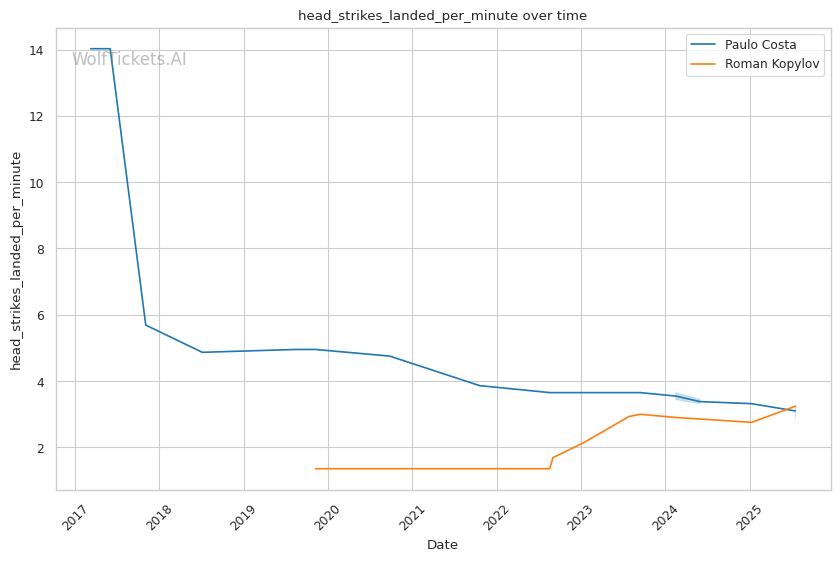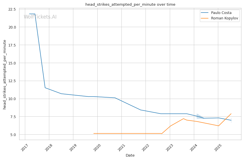 | Head Strikes Attempted per Minute | 6.644 | 7.892 | 5.765 | |