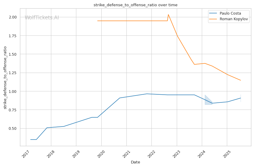 | Striking Defense to Offense Ratio | 95.79% | 114.63% | 74.44% | |