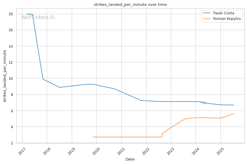 | Stat | Paulo Costa | Roman Kopylov | Weight Class Average | |