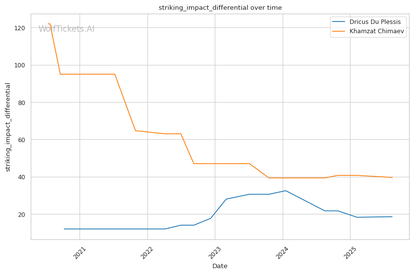 • Wrestling vs. Anti-Wrestling: Chimaev's takedown success against Whittaker (85% defense rate) suggests Du Plessis's improved but untested defensive wrestling faces elite-level pressure