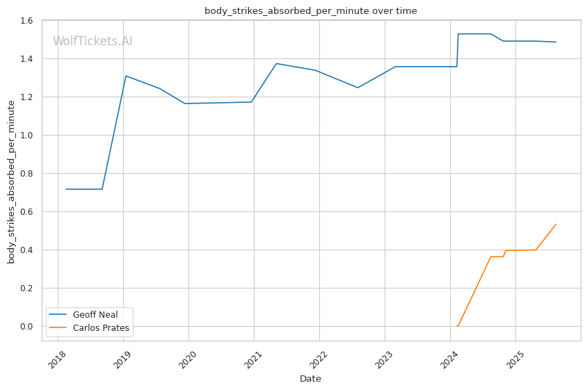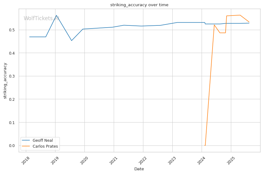 Neal's pressure-fighting approach should force Prates into the type of exchanges where his single-shot power becomes most dangerous. But Prates' exceptional reach advantage and speed could allow him to land his left straight before Neal can close distance effectively. The key battleground will be Neal's ability to cut off the cage against Prates' superior physical dimensions.