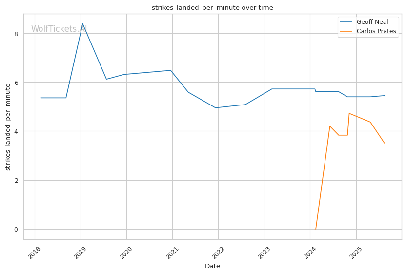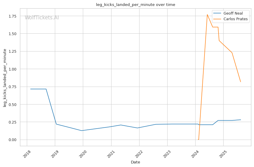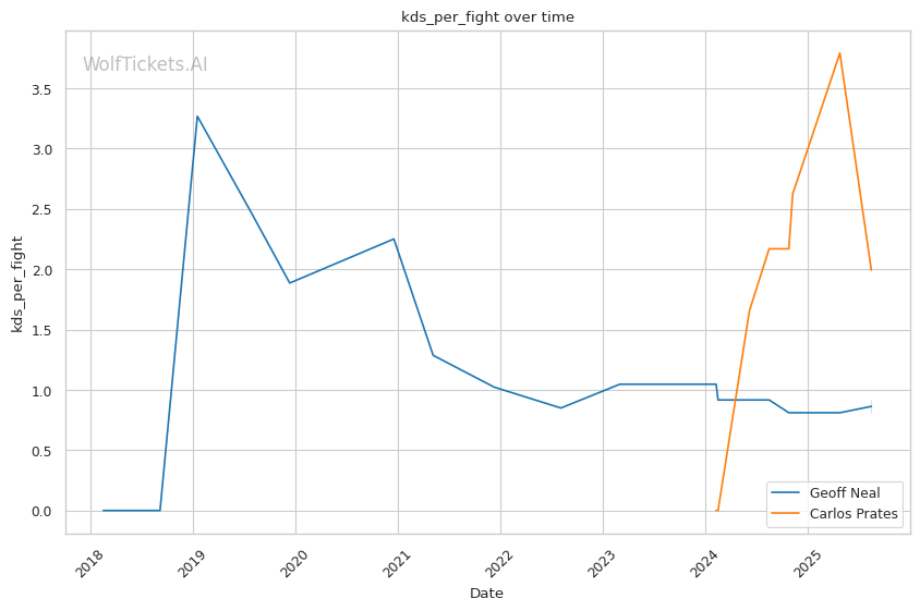 Prates' low kicks could exploit Neal's lead leg vulnerability, particularly when Neal jabs in. However, Neal's experience against elite competition gives him better defensive awareness than many of Prates' previous opponents who were caught off-guard by his power.
