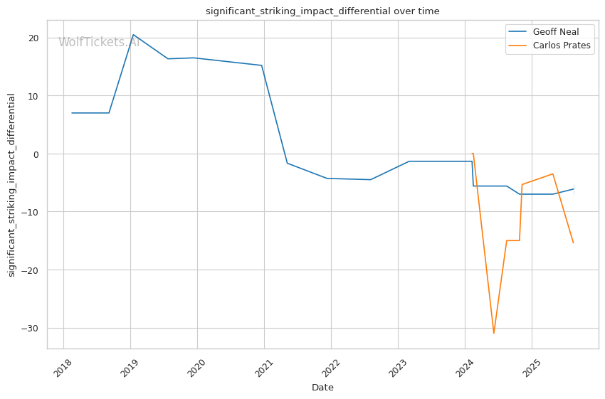 • Physical Mismatch: Prates' 3-inch reach advantage and exceptional hand speed create significant problems for Neal's pressure-based approach • Power vs Experience: Neal's veteran savvy against elite competition contrasts with Prates' raw finishing ability • Defensive Vulnerabilities: Both fighters show exploitable gaps - Neal's lead leg exposure vs Prates' hand-fighting frustrations • Recent Form: Neal's 2-4 record in last 6 fights suggests decline, while Prates has finished 4 of his last 5 UFC opponents