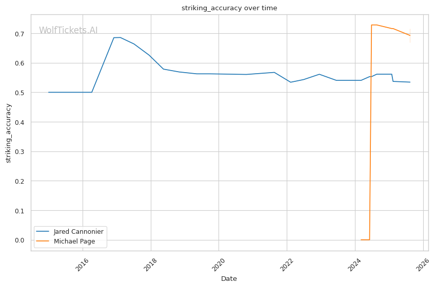 This matchup presents a fascinating clash between Cannonier's aggressive, power-based entries and Page's evasive, counter-striking approach. Cannonier's tendency toward telegraphed initial attacks could play directly into Page's counter-punching wheelhouse. When Cannonier commits to his right straight entries, Page's lunging counter-attacks could time these moments perfectly.
