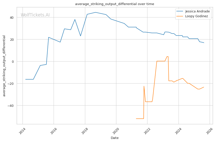 | Stat | Jessica Andrade | Loopy Godinez | Weight Class Average | |