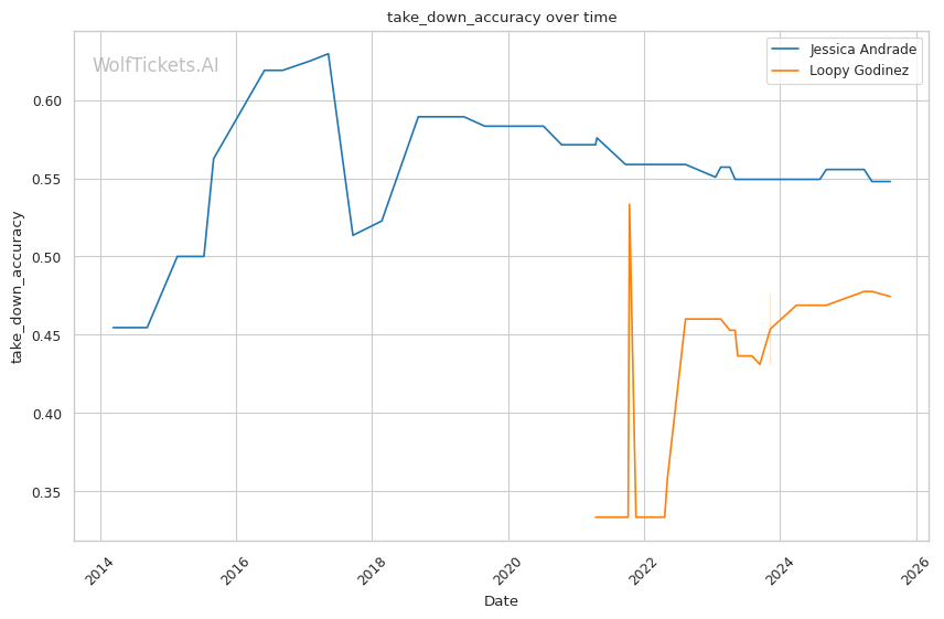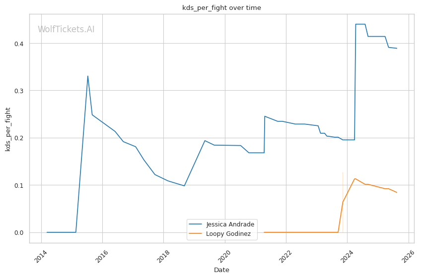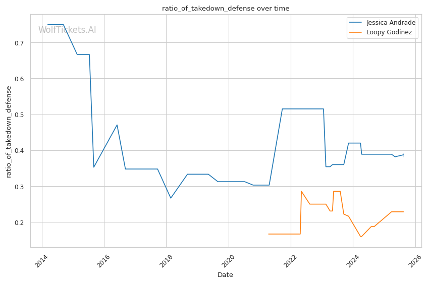 This matchup heavily favors Godinez's skill set. Andrade's predictable forward pressure plays directly into Godinez's reactive takedown game. When Andrade throws her signature looping hooks, Godinez can time level changes for easy takedowns, similar to how Jasudavicius caught her entries.