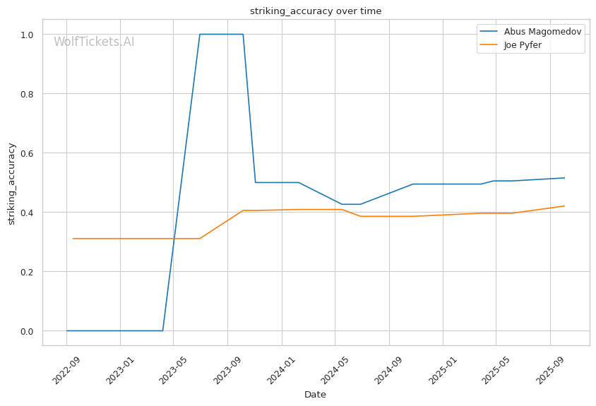 Magomedov's front kicks and head kicks could find success early if Pyfer pressures predictably without varying his head position. However, Magomedov's tendency to abandon his kicking game when tired means this vulnerability only matters in round one.