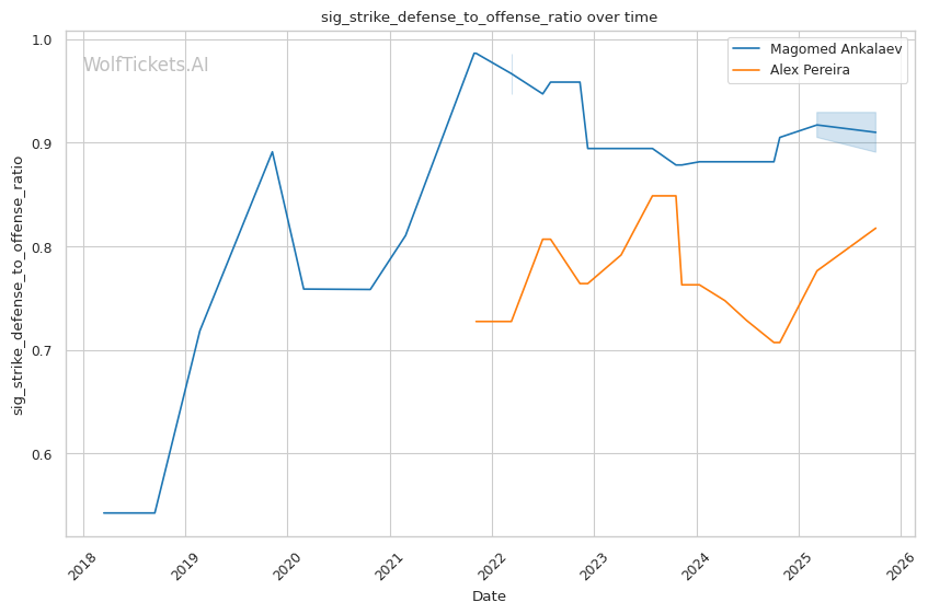 | Significant Striking Defense to Offense Ratio | 89.07% | 81.74% | 76.58% | |