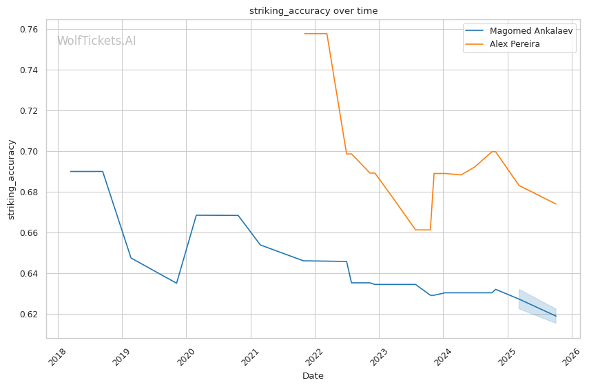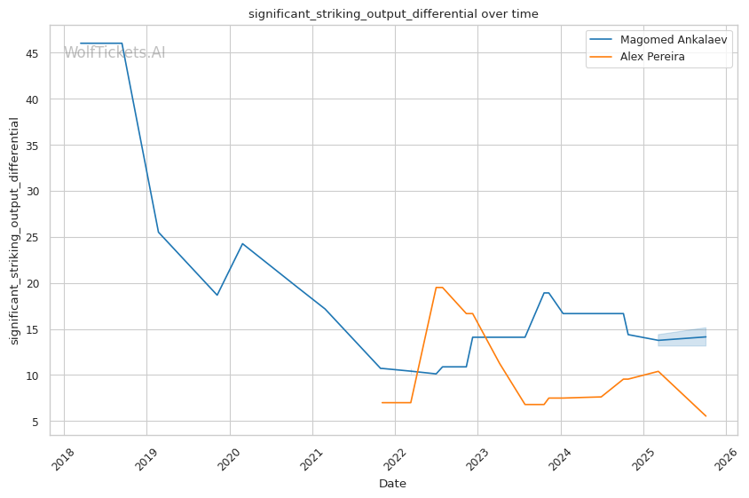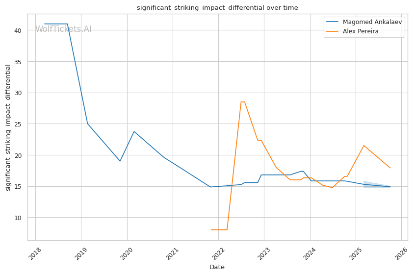 The model's previous error on Pereira-Ankalaev I suggests it initially undervalued Ankalaev's stylistic advantages. However, with fight data now incorporated, the model recognizes the technical mismatch.