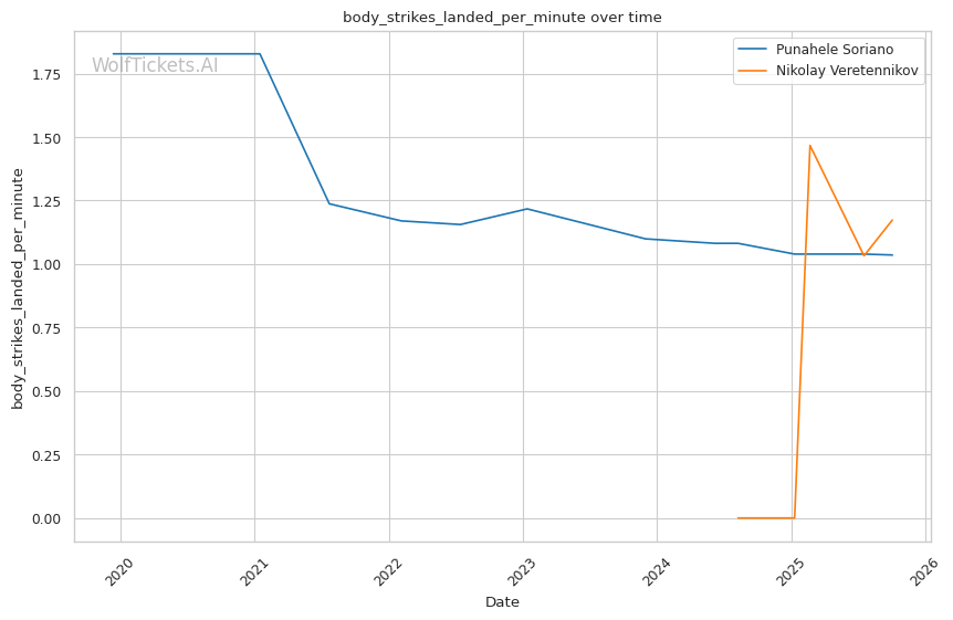 | Stat | Punahele Soriano | Nikolay Veretennikov | Weight Class Average | |
