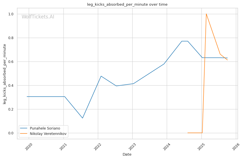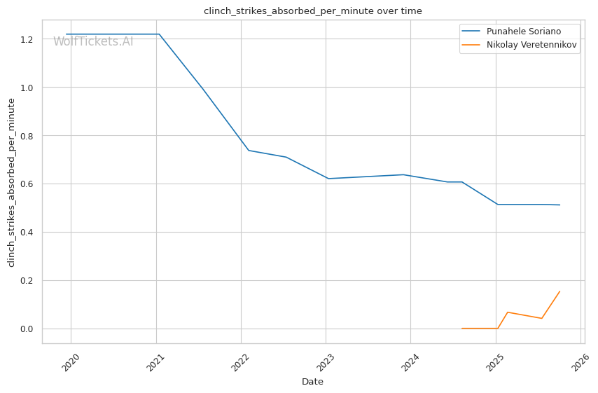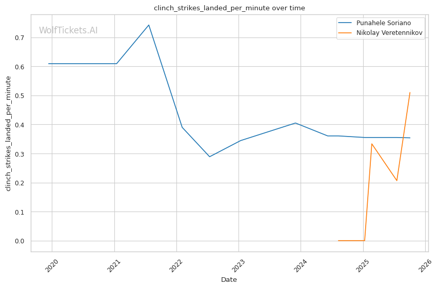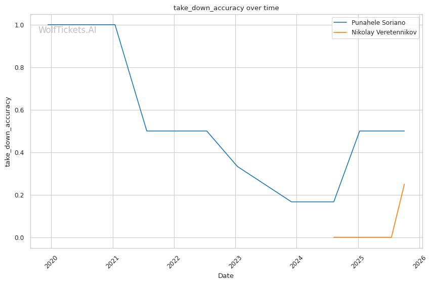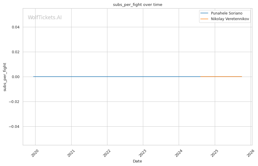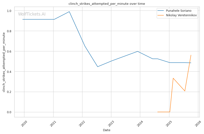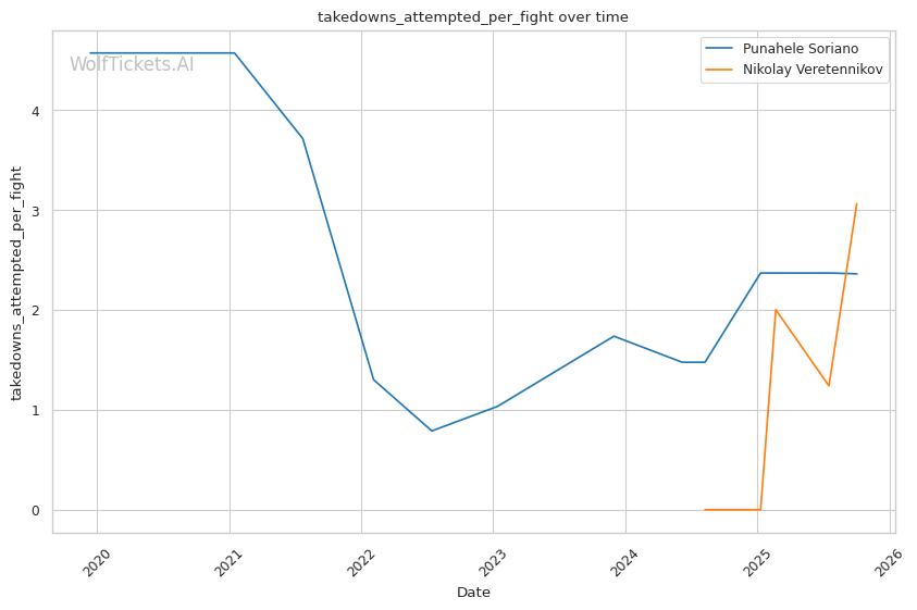 The grappling dimension could be decisive. Soriano demonstrated legitimate wrestling against Baeza—four takedowns, 164 significant ground strikes, dominant control. Veretennikov's early takedown susceptibility and poor bottom position defense create a clear exploitation path. If Soriano chooses to implement his wrestling (a big "if" given his striking obsession), Veretennikov has shown no ability to defend entries or escape bad positions.