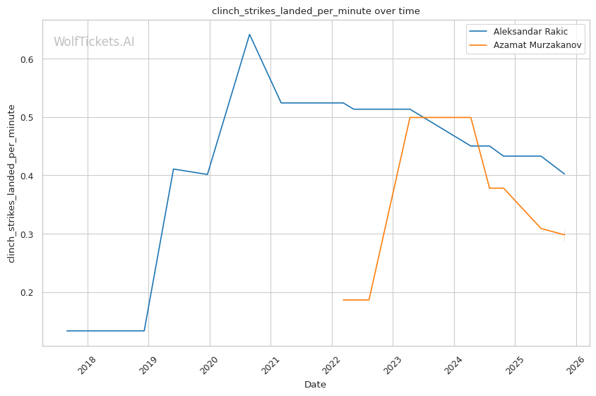 Striking Impact Differential increased by 1.0: Rakic's +32.3 differential vs. Murzakanov's +11.6 suggests Rakic historically lands more significant strikes, but this doesn't account for his recent inability to generate meaningful offense.