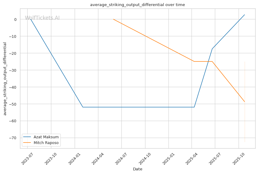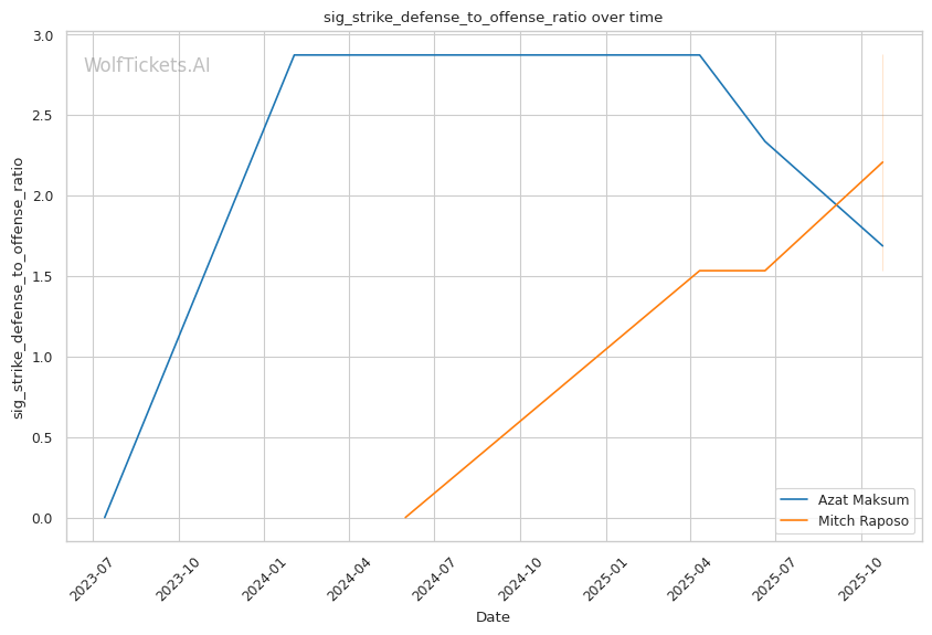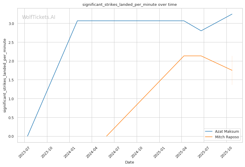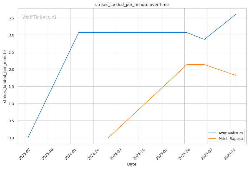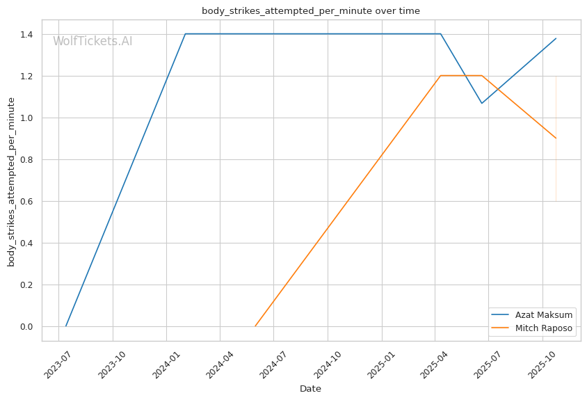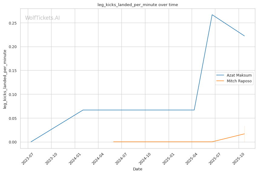| Stat | Azat Maksum | Mitch Raposo | Weight Class Average | |