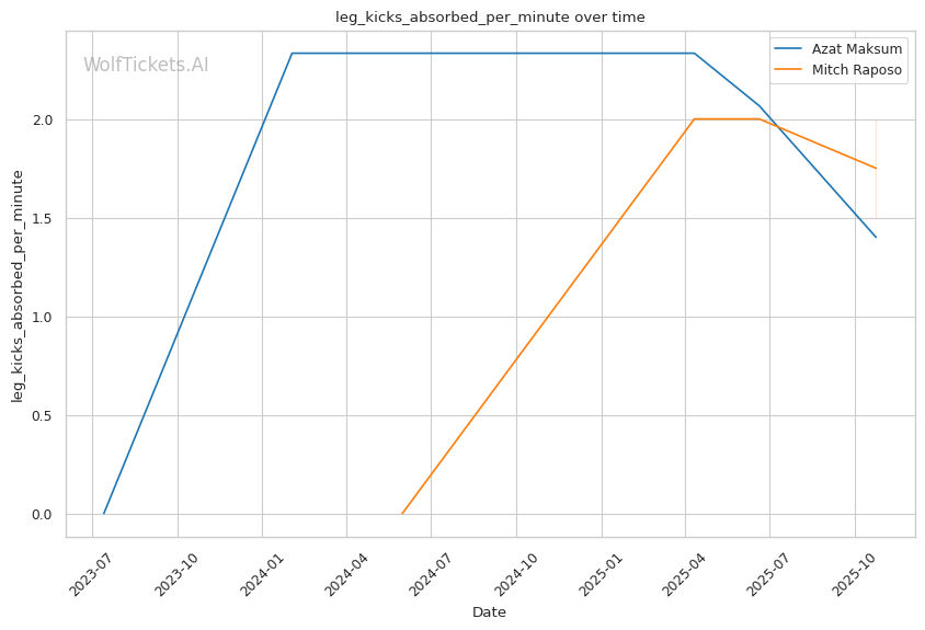 | Leg kicks Absorbed per Minute | 1.400 | 1.500 | 0.638 | |