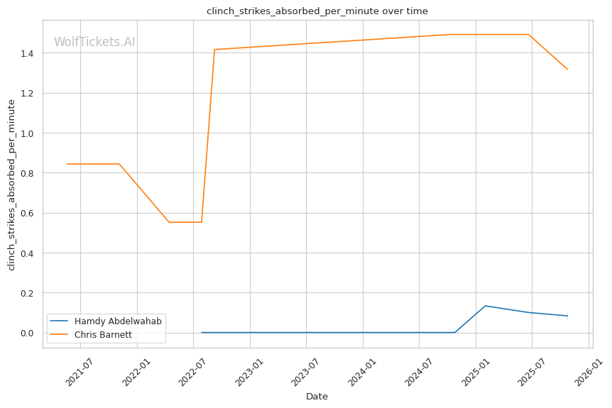 The Superman jab to low kick combination that worked against Collier could find success in round one. Abdelwahab's striking defense percentage is only 50.82%, and he absorbs 2.56 head strikes per minute. If Barnett can establish this rhythm early, he might compromise Abdelwahab's cardio before wrestling becomes a factor.
