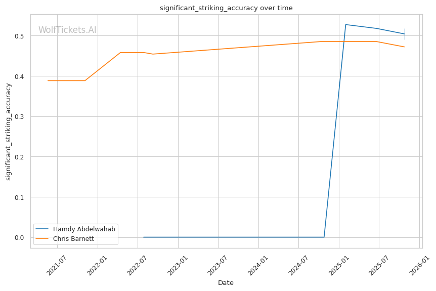 Both fighters are coming off losses and showing downward trends—Abdelwahab lost 2 of his last 3; Barnett lost 2 of his last 3 with catastrophic injury in the most recent