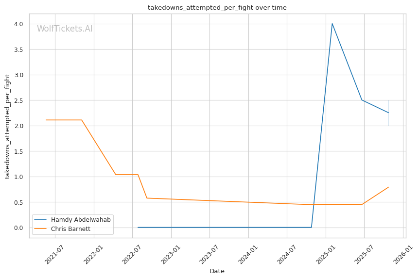 This matchup hinges entirely on whether Abdelwahab commits to his wrestling or repeats the Usman disaster. Barnett's structural integrity issues make him incapable of defending sustained wrestling pressure. His takedown defense ratio of 2.0 is misleading—he's faced minimal wrestling in recent UFC fights. Against Rothwell, when finally taken down, Barnett gave up his back immediately and nearly got rear-naked choked in round one.