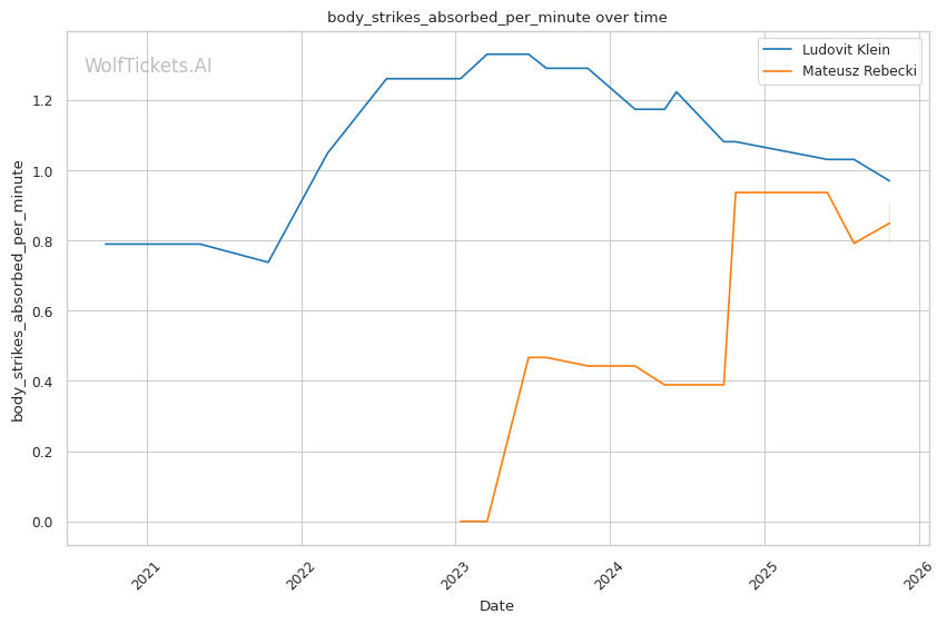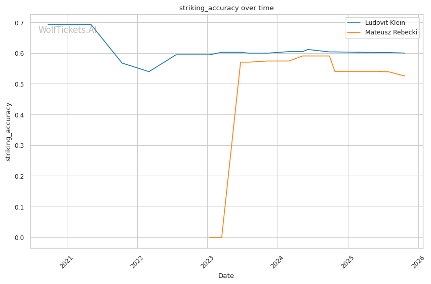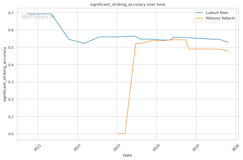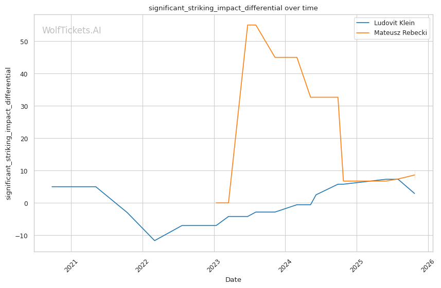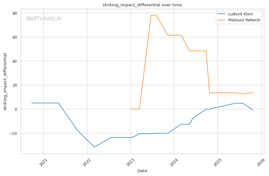 Significant Striking Impact Differential and related metrics added points—Klein's +5.86 recent significant striking impact differential versus Rebecki's +7.35 shows both land effectively, but Klein's defensive improvements (59% significant striking defense) give him the edge.