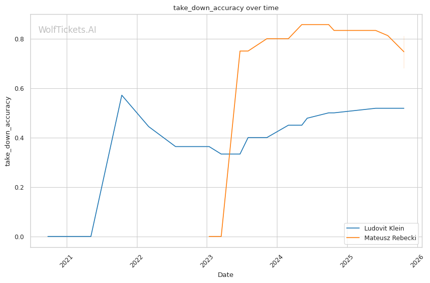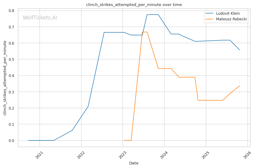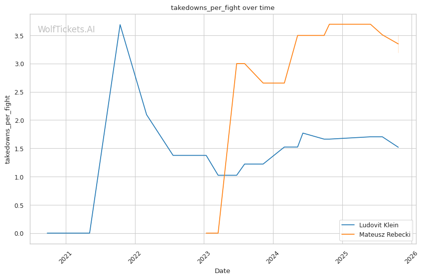Rebecki's wrestling threat should theoretically neutralize Klein's kicking game, but Klein's improved defensive wrestling tells a different story. Against Moises, Klein successfully defended clinch positions with underhook control and angle creation. Rebecki's takedown entries are typically reactive rather than proactively set up—exactly the type Klein has learned to defend.