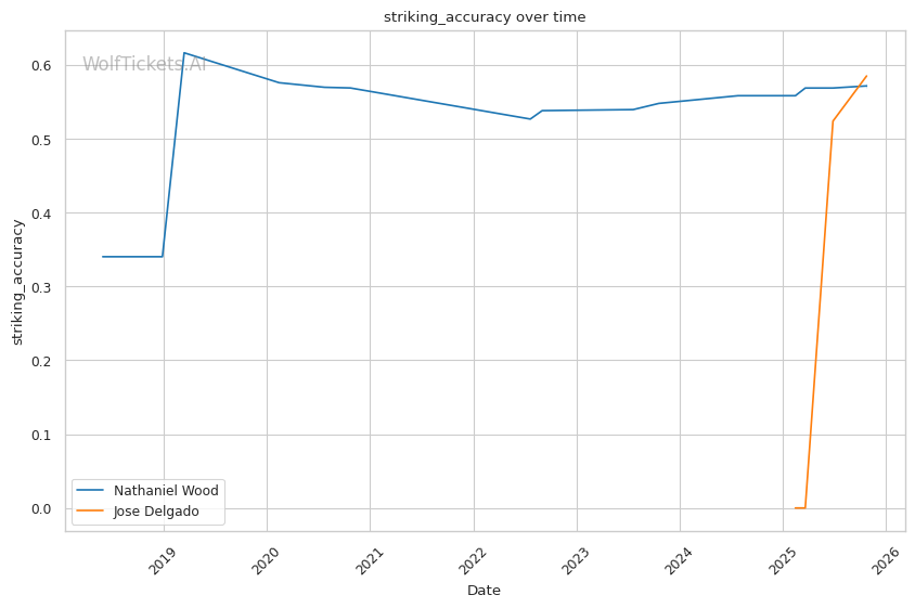 Championship Rounds (10-15 minutes): Wood's cardio concerns against Charriere raise questions about his late-fight effectiveness, but Delgado's complete lack of UFC fights extending beyond round one makes his cardio a total unknown. Wood's experience in decisions (wins over Matthews, Pineda, Fili, Jourdain, Rosa) versus Delgado's zero UFC fights reaching round two creates a significant experience gap. If the fight reaches round three, Wood's familiarity with late-fight technical execution likely gives him the advantage, assuming his cardio holds up better than it did against Charriere.