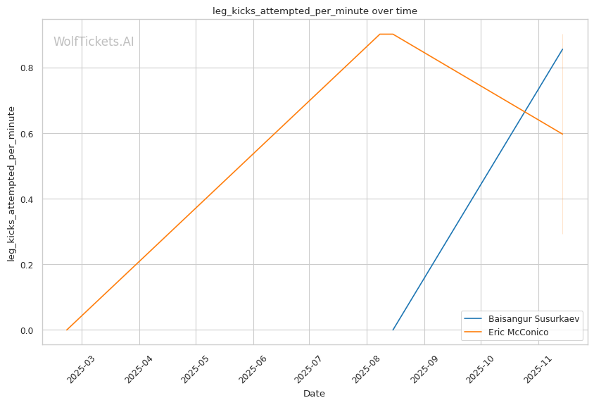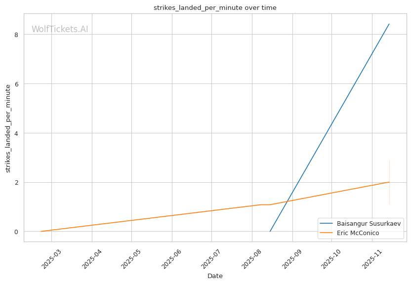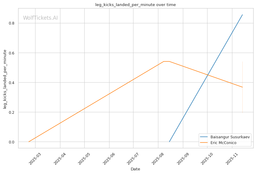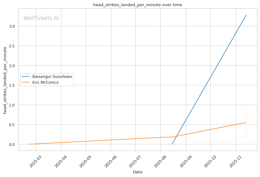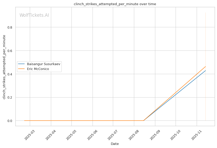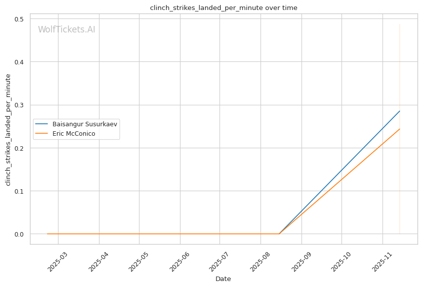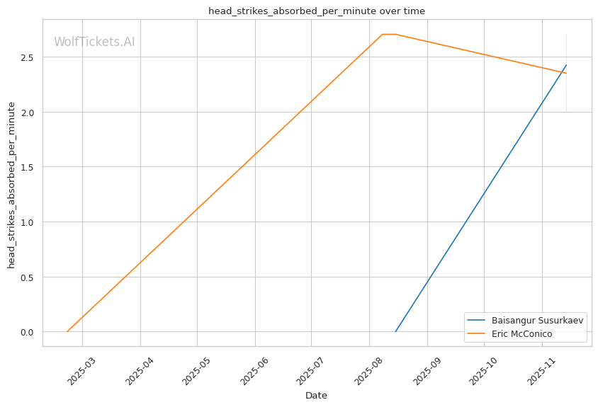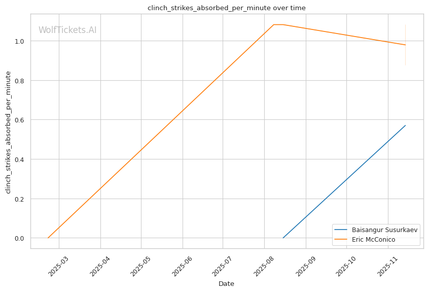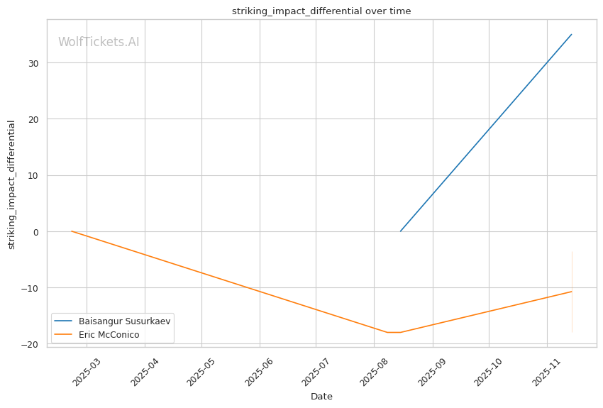 Susurkaev's high-volume takedown attempts (14.96 per fight) will immediately test McConico's 84.33% recent takedown defense. McConico has shown he can scramble back to his feet, but the repeated defensive wrestling exchanges will drain his cardio—a critical factor given both fighters gassed in their previous bouts. Once McConico's legs are compromised, Susurkaev's submission game (2.14 per fight) becomes increasingly dangerous.