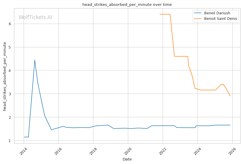 | Head Strikes Absorbed per Minute | 1.656 | 2.899 | 2.337 | |