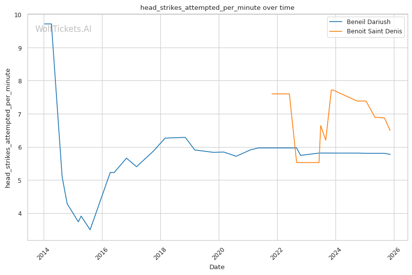 | Head Strikes Attempted per Minute | 5.741 | 6.495 | 6.650 | |